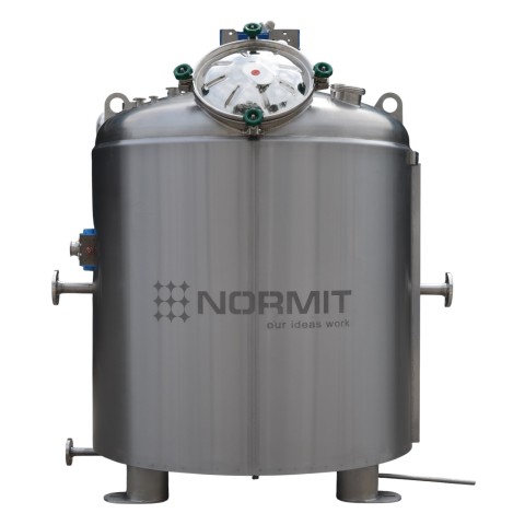 Ontwerp Het ontwerp van de vacuümkoker bestaat uit een thermisch geïsoleerd cilindrisch vat uitgerust met een roerwerk met schrapers die speciaal gevormd zijn voor het effectief mengen van viskeuze producten en het oplossen van ingrediënten. Het deksel van de cooker is voorzien van een luik om ingrediënten in te doen, verwerkingshulpstukken volgens de specificaties van de klant. Er is ook een kijkglas, aansluitstukken voor het CIP-systeem, een vacuümmeter, een vacuümregelaar en een stoomcondensor. Aan de onderkant van de vacuümkoker bevindt zich de speciaal ontworpen bodemklep (met handmatige, pneumatische of mechanische aandrijving, met mechanische vergrendeling), die de afwezigheid van een dode zone bij het lossen van het product garandeert.